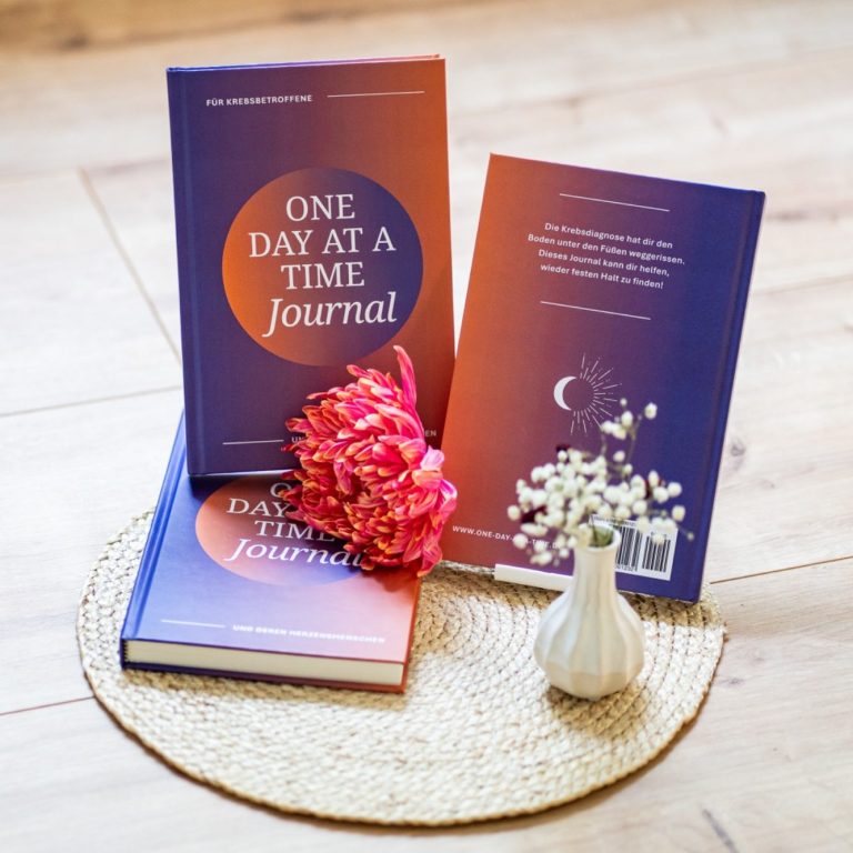 “Das One Day At A Time Journal ist dein Weggefährte während der Krebstherapie. Es schafft einen Raum, um Ruhe und Klarheit zu finden von dem aus du zu mehr Selbstwirksamkeit und innerer Stärke gelangst. Fühl dich eingeladen, einen Moment innezuhalten und zu entdecken, was das Journal für dich bereithält.”